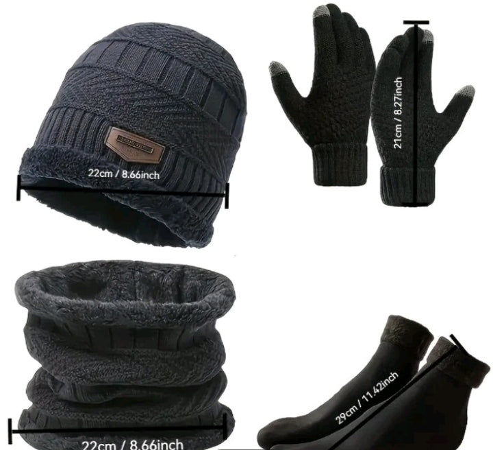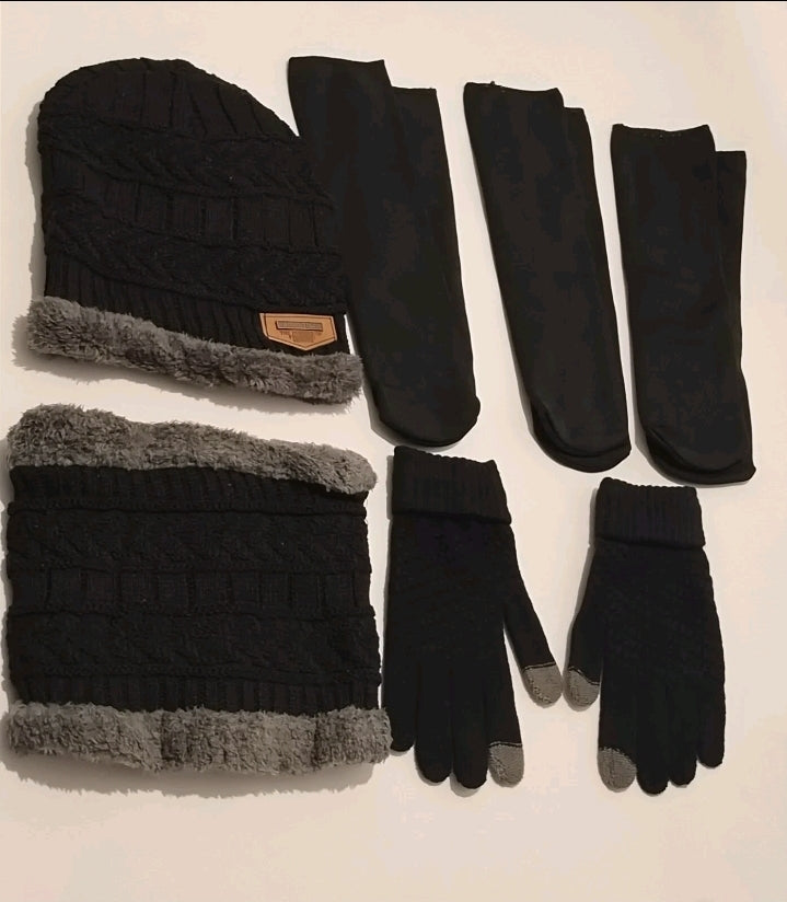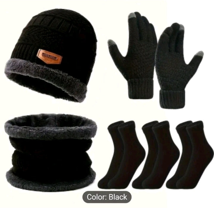 6PCS Unisex Winter Set (1 Hat 1 neck Warmer 1 Pair Of Gloves & 3 Pairs Of Socks)