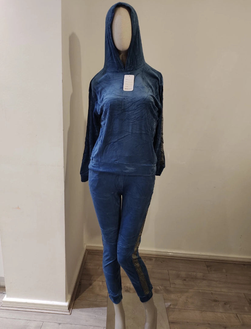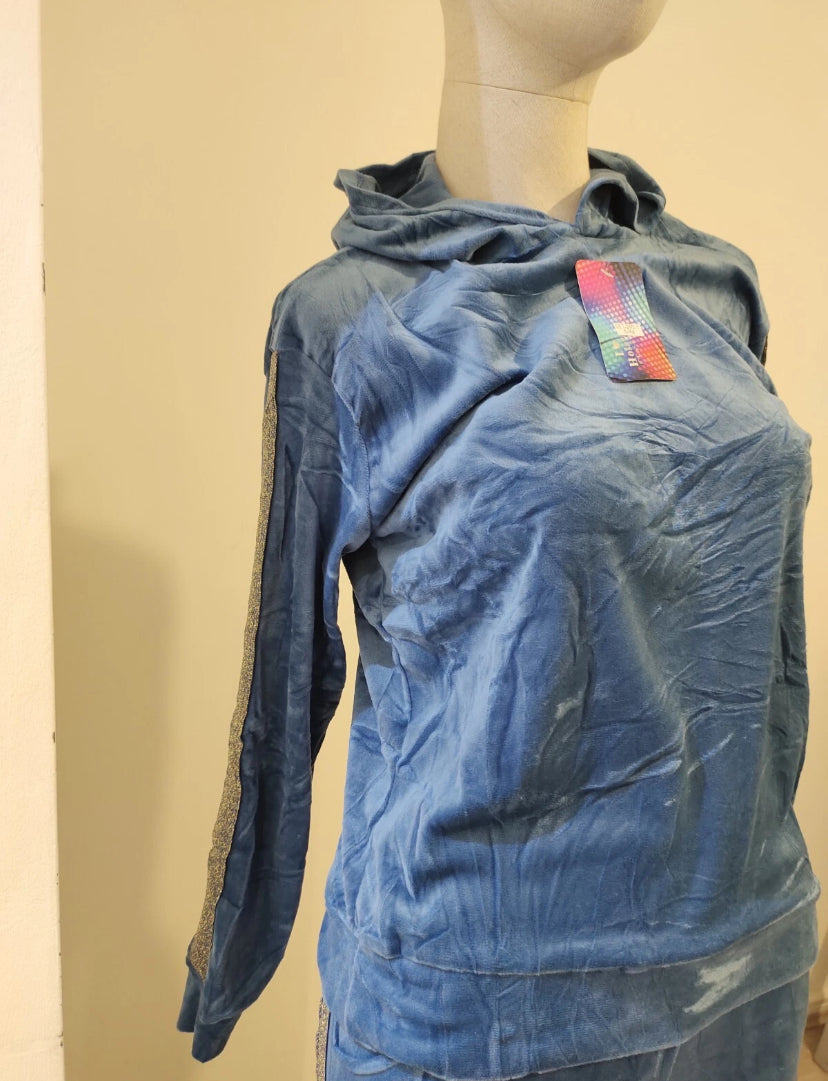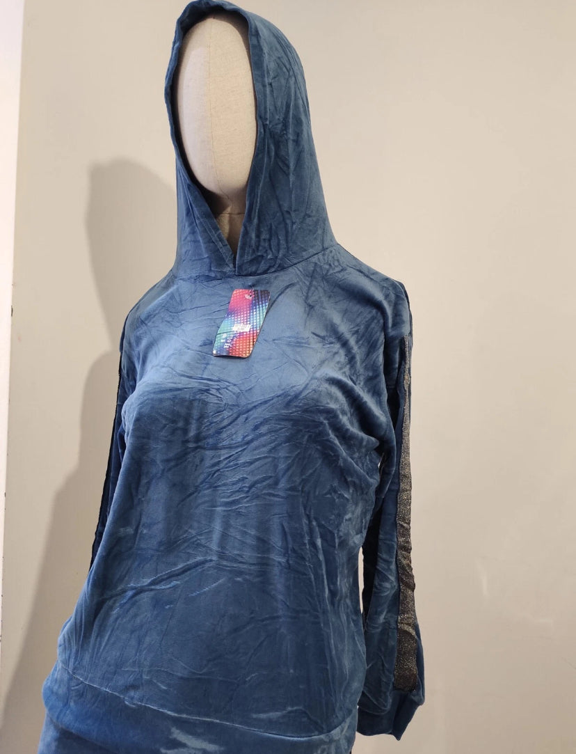 Blue velvet hoodie ladies women hooded long sleeve 2 pieces set with trim detail size S/M Read more