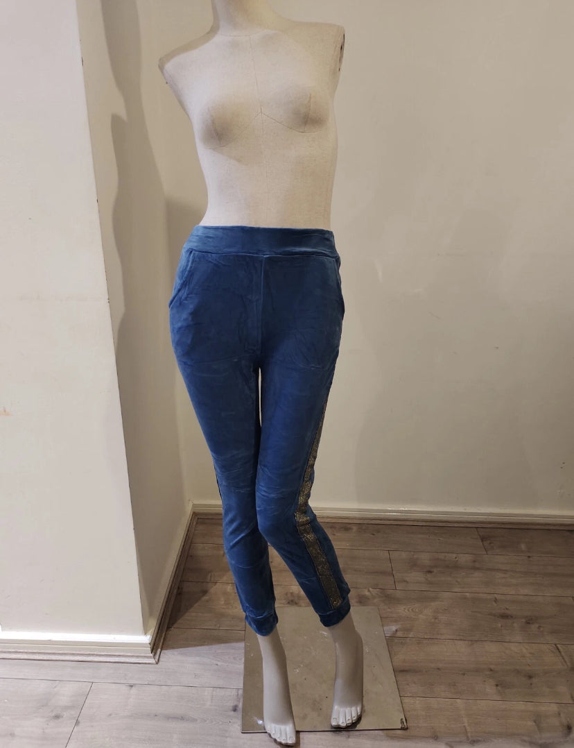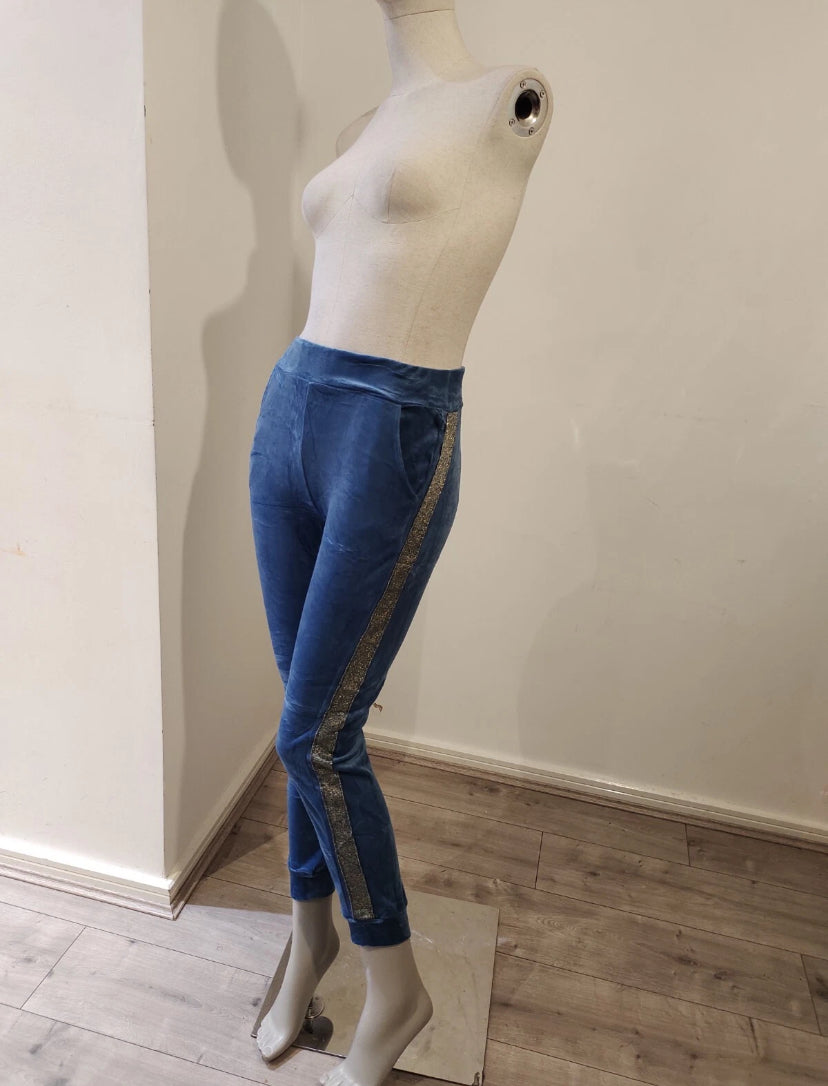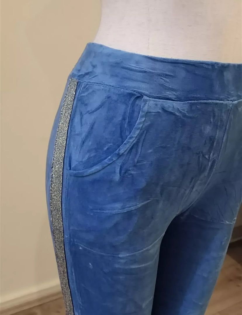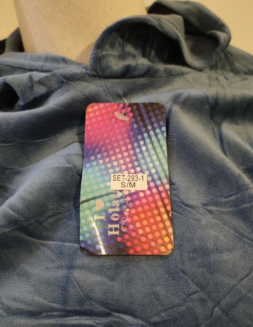Blue velvet hoodie ladies women hooded long sleeve 2 pieces set with trim detail size S/M Read more