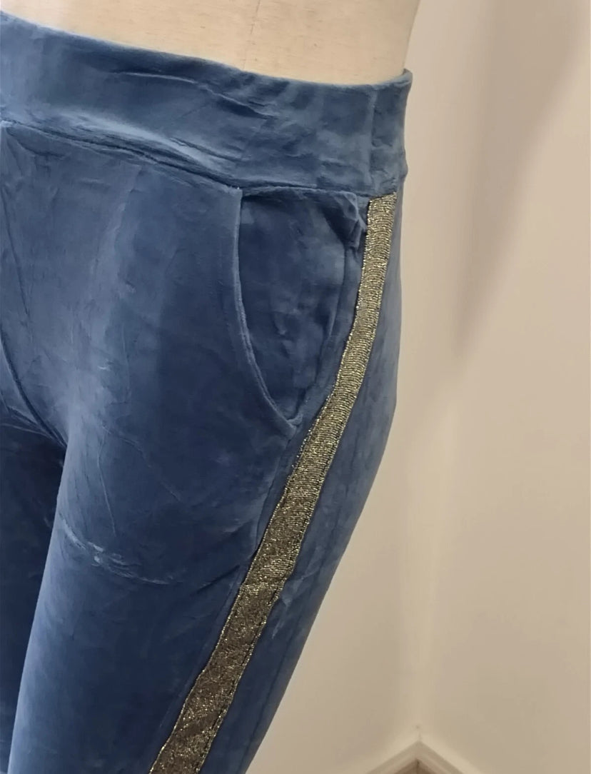 Blue velvet hoodie ladies women hooded long sleeve 2 pieces set with trim detail