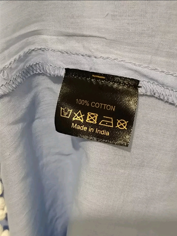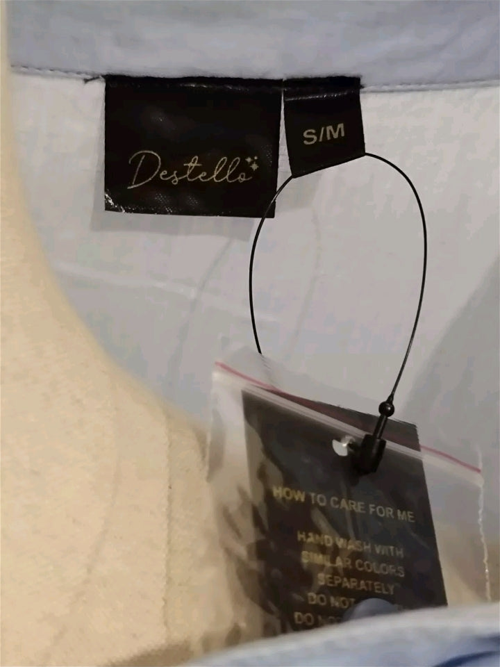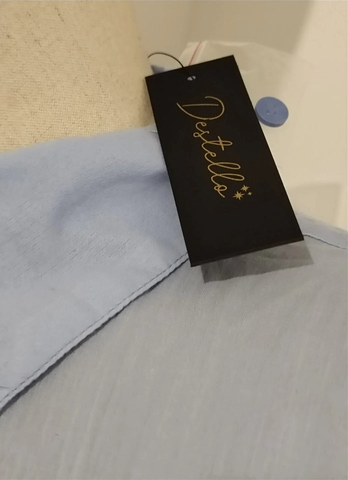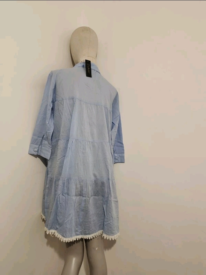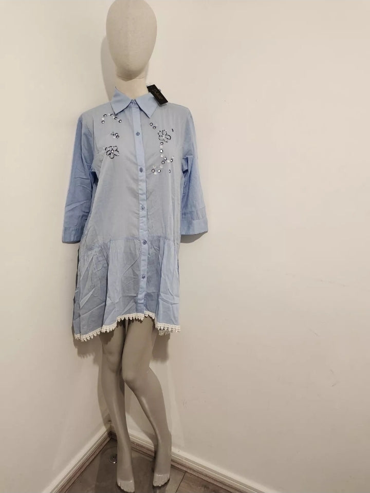 Destello bead embellishment embroidery lace trim detail buttoned collared shirt mini dress 100% Cotton sky blue S/M The mannequin used... Read more