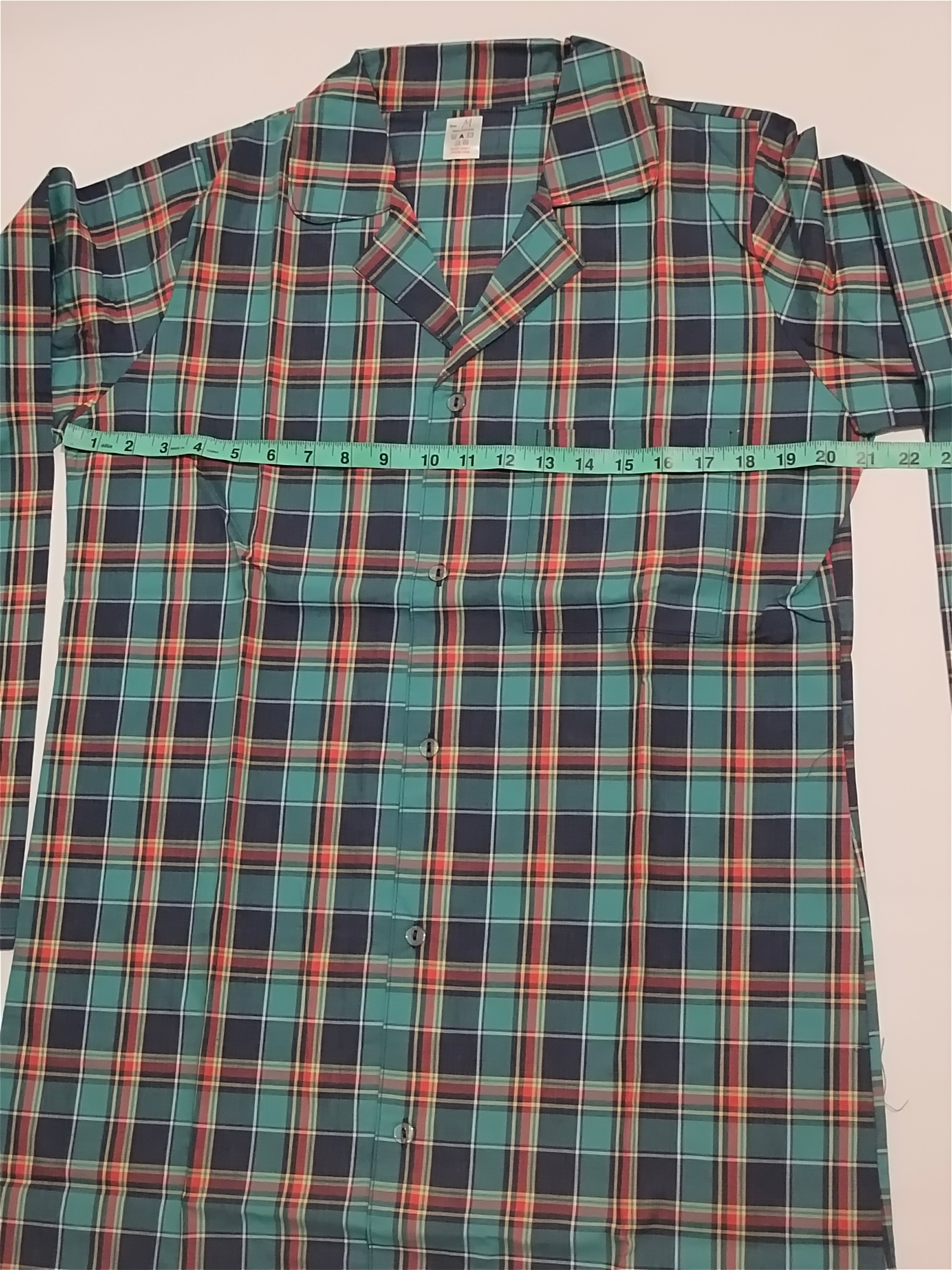 Men 100% Cotton Button Up Long Sleeve Check Tartan Nightshirt Nightwear Size S/M