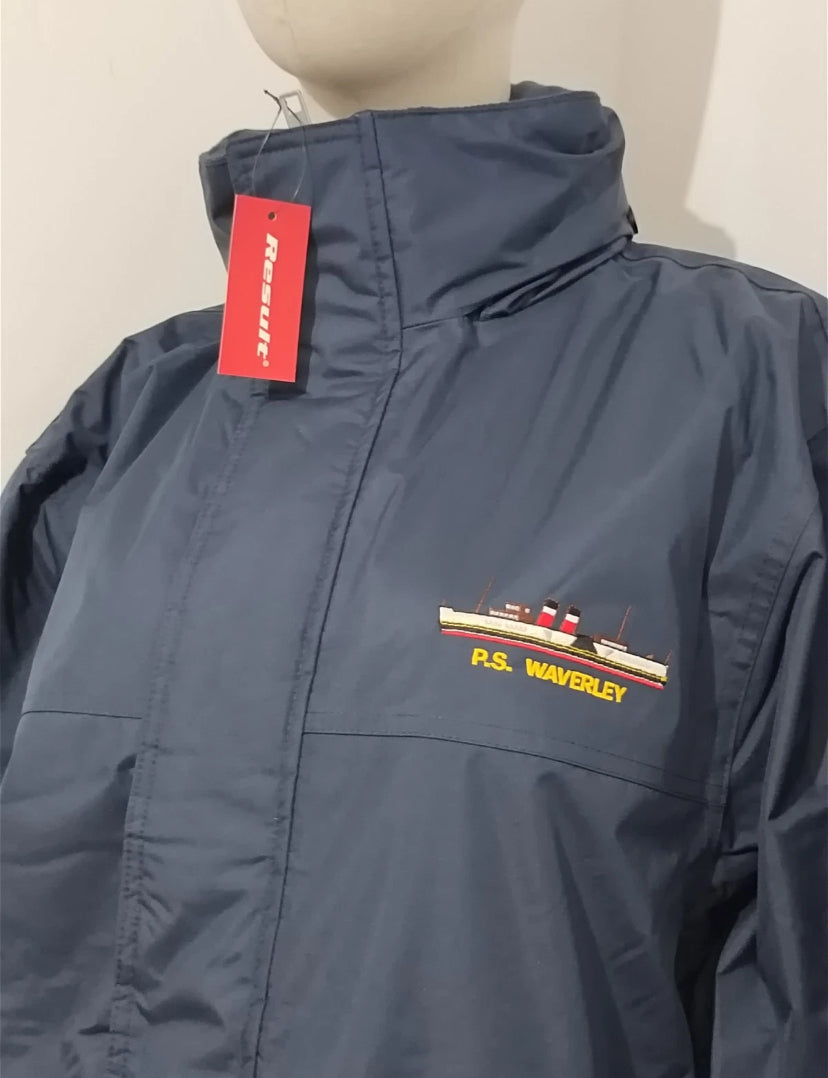 Waverley waterproof men jacket navy size L with embroidery logo and pocket to hide hoodie Read more